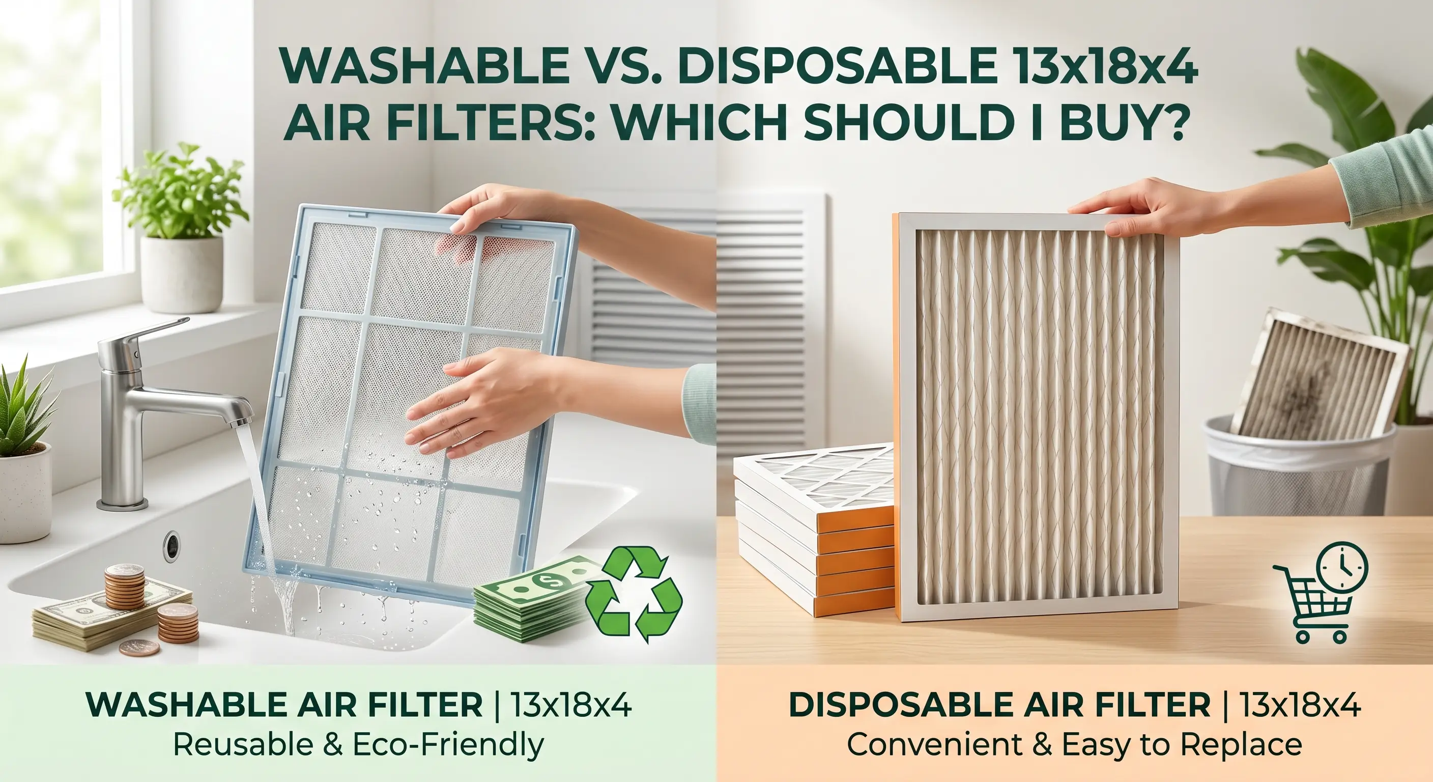 Every filter you install in a 13x18x4 slot cleans the air your family breathes for the next six to twelve months. That's enough time for pet dander, Florida humidity, and whatever drifted in during wildfire season to do their work. The call between a washable frame and a pleated disposable matters more than most buying guides let on. After manufacturing filters for over a decade and pulling used ones out of homes across the country, we know which type belongs in your slot and why.